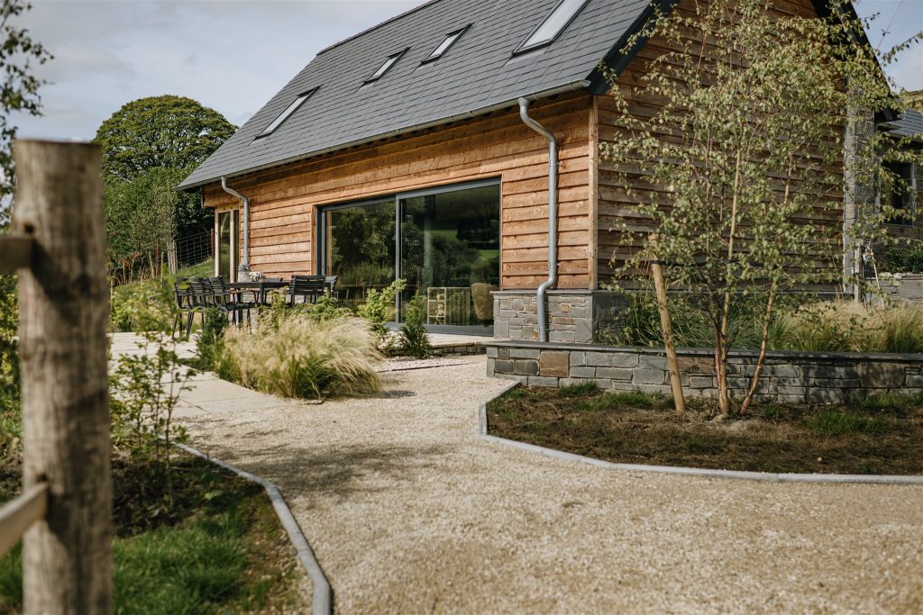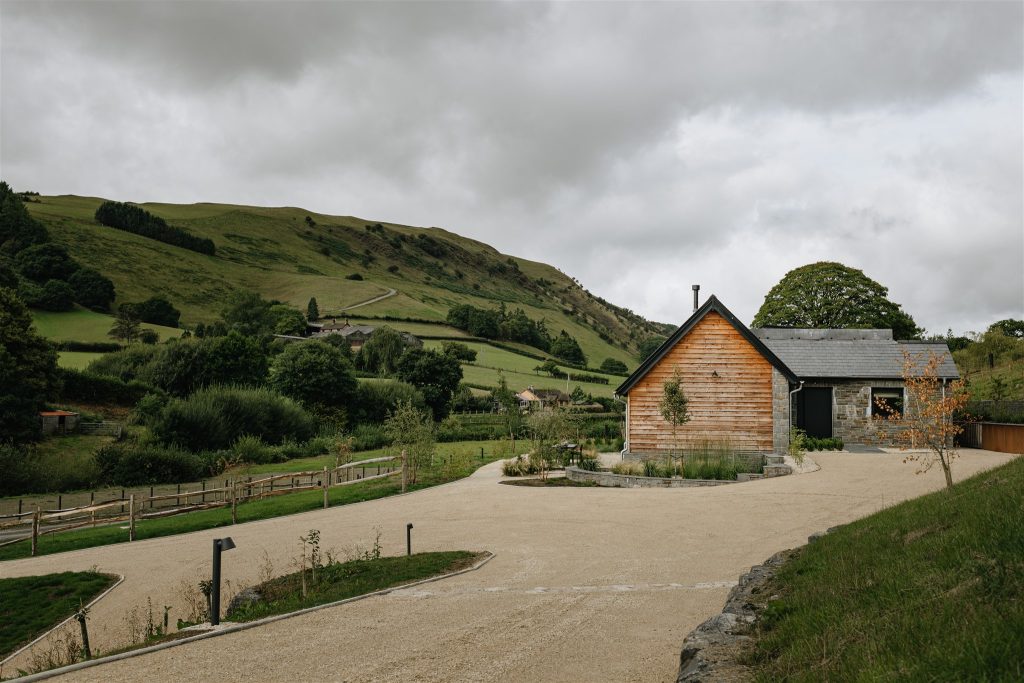 Five design-led bedrooms, an open-plan living area, and a fully equipped kitchen support productive group stays, whether you’re hosting a retreat or gathering loved ones. Outside, a gravel garden and stone terrace extend the space for everything from outdoor meetings and workshops to relaxed family meals, celebrations, or simply unwinding together in rural Mid Wales.